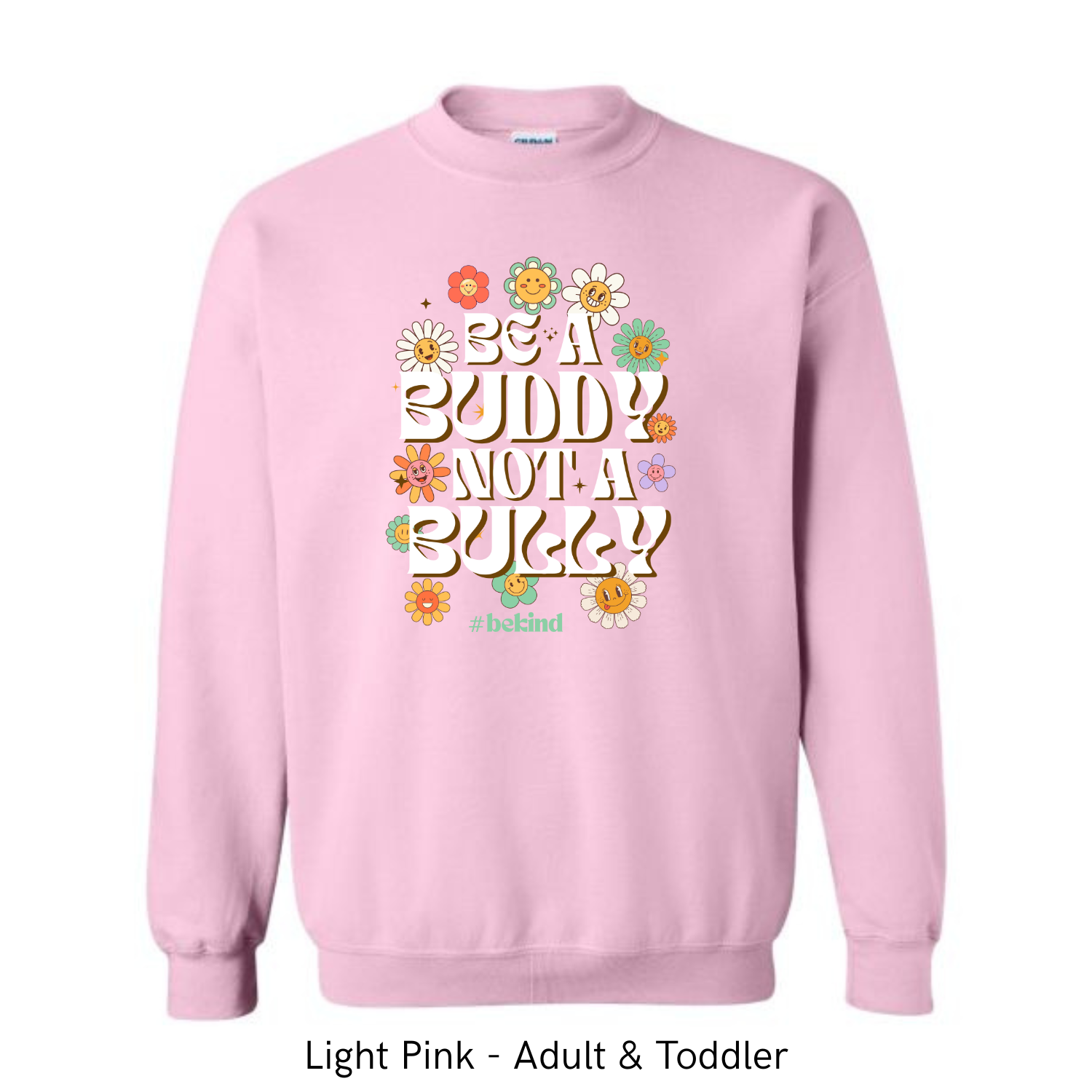 Spread kindness in style 💖 Our Be a buddy floral design is perfect for Anti-Bullying Day and beyond. Choose your favourite colour and style — hoodie, crewneck, or tee. Comfortable, meaningful, and made to be worn with pride.