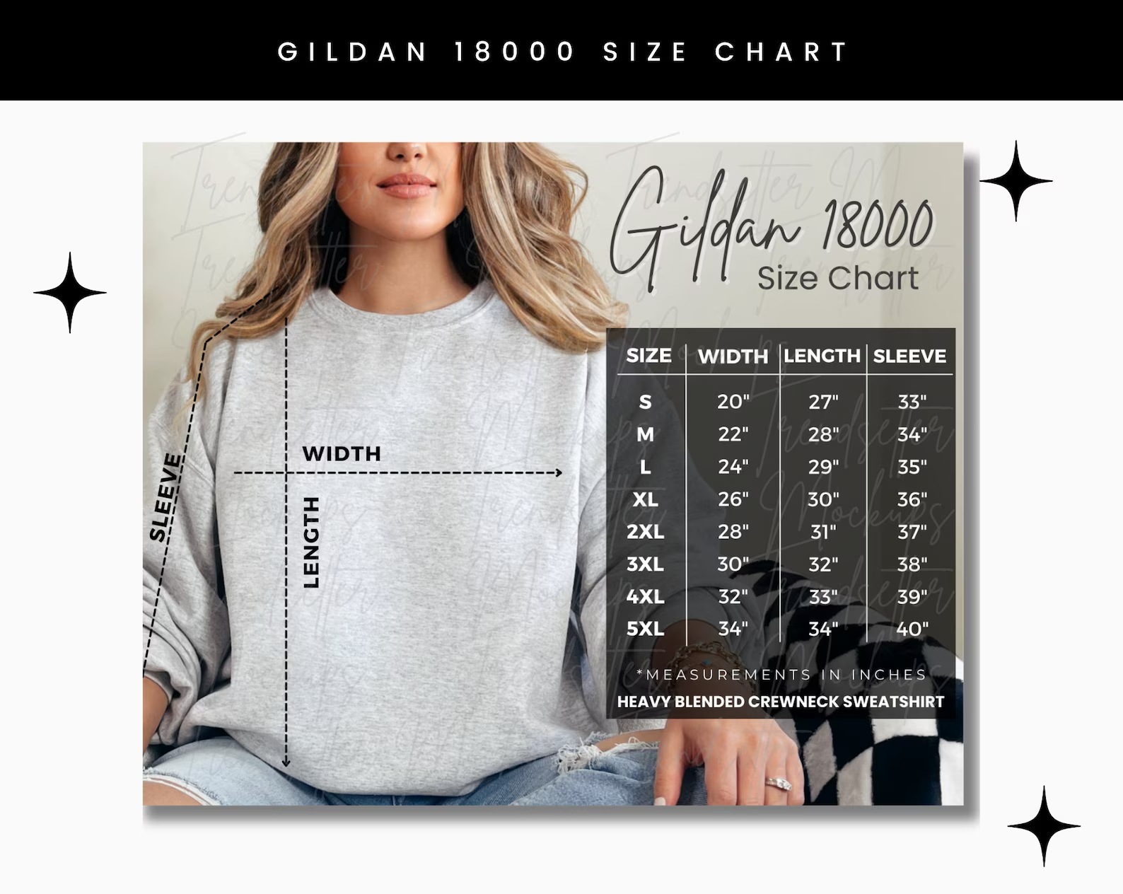 Adult - Cozy Gildan brand crewneck. Available in a full size range.