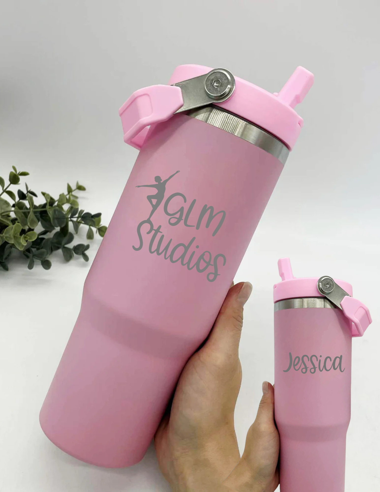 Stay hydrated in style with the GLM Studios Water Bottle. This spacious 30-ounce bottle features a convenient flip-top lid and built-in straw for easy sipping on the go. Personalized engraving lets you showcase your logo and even add your name for a truly unique touch.
